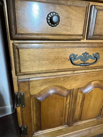 Well made solid wood pine hutch in lovely condition. Lots of room for storage on the shelves and in drawers! Classy hinges and knobs along with fine wood working details add elegance. Cabinet has wheels so it’s easy to move. Consists of 2 pieces so it’s easy to assemble. Combined dimensions are 50” wide x 73” tall. X 20” deep. $395. Can deliver nearby for an extra fee. Mid City LA near Fairfax and Pico Streets, 90019. Contact outdoorslew at gee male or call 310-seven seven zero-7962.