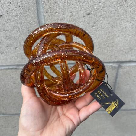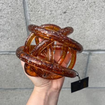 NICE PRESENT Glitter Knot Decorative Object Anthropologie Dupe Clear Amber Gold Flake Sparkle Beautiful, whimsical, unique artisan piece! Handcrafted twisted knot art glass decorative object...
