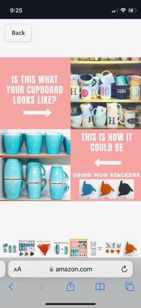 Brand new, set of six coffee mug and glass stackers/organizers! Creates tons of extra room in cabinets!