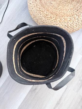 Cotton Rope & Grass Braided Basket set with leatherette handles is a decorative storage solution for any home. An ideal laundry basket or hamper, it can also function as a storage bin for clothing, blankets, pillows, and linens. Natural cotton rope and braided grass form a circular-shaped basket.