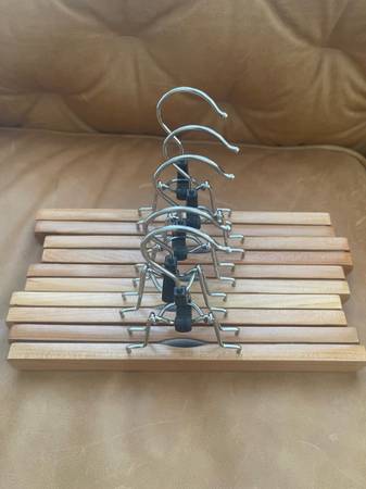 SET OF 5 WOOD PANT HANGERS – High-quality clamping hangers make use of luxe wood materials and chrome plating, with superior engineering to ensure your every garment stays tidy, organized, and...