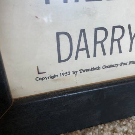 Genuine 1952 theatrical one-sheet for Ernest Hemingway’s “The Snows of Kilimanjaro,” starring Gregory Peck, Susan Hayward, and Ava Gardner, mounted in a simple black wood frame.