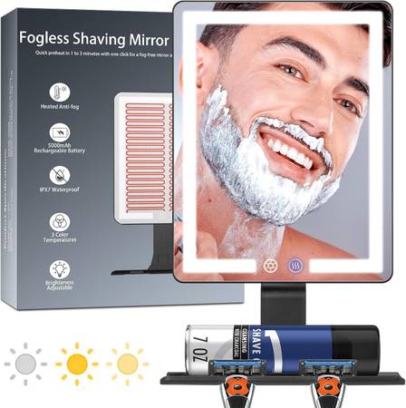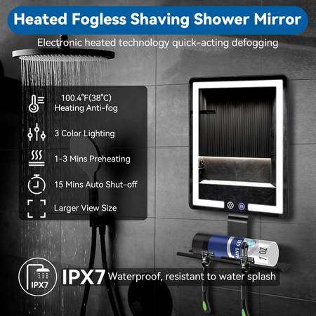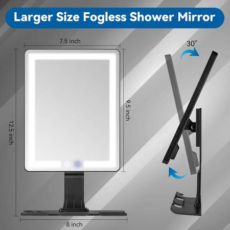 【Larger Size for Better View】9.5*7.5 inch anti-fog shaving mirror has a larger reflective surface than regular mirror, allowing you to see the details of the face and neck clearly in the wet shower environment. Fogless lighted shower mirror tilts up and down 30°, adjustable to use at a comfortable height.