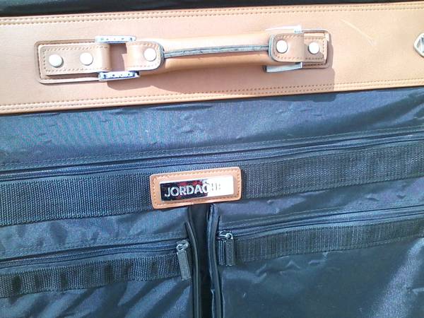 Jordache Travel Garment Bag. Colors are Black with Brown Tan trim