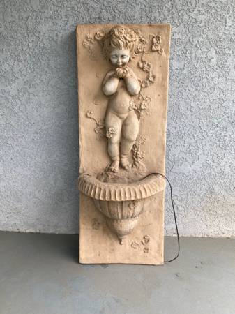 Vintage Large Patio Outdoor Water Hanging Wall Fountain - Girl Cupping Hands 49" h x 18" w x 11" d