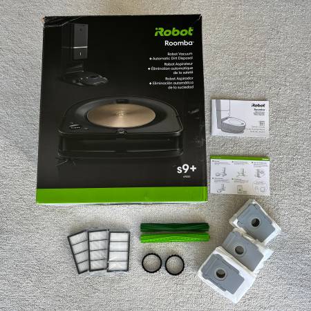 Clean, fully working Roomba s9+ with Clean Base (self-emptying). I’m the original owner. Unit maps, charges, vacuums, and auto-empties exactly as it should. Body and base show light, normal cosmetic wear only (see close-ups). Side brush and rollers are in decent shape. Rubber tires were recently replaced with Garbage Fighter tires.