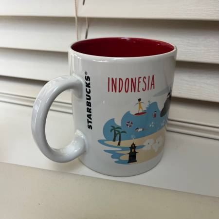 MUST SELL starbucks indonesia 2015 ceramic coffee mug w/ handle 16 fluid ounces collectible memento souvenir gently used a handful of times, mostly just displayed, no damage