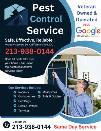 Pest Control Rodents BED BUGs Cockroaches Termites Rats Ants Wasps 🪳 (Los Angeles County 🪳 213-938-0144)