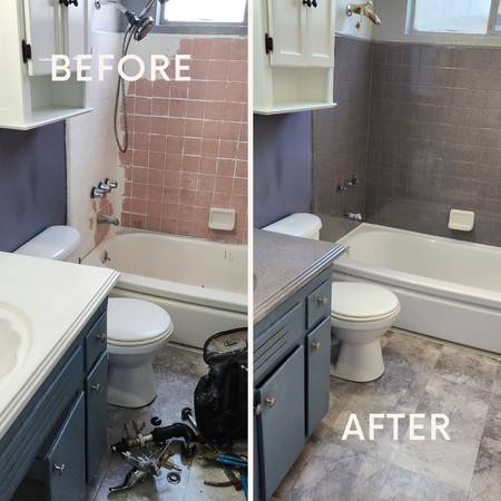 Refresh your bathroom or kitchen and save thousands by refinishing instead of replacing. With over 20 years of experience, we make your surfaces look brand new again with smooth, glossy, and durable finishes.