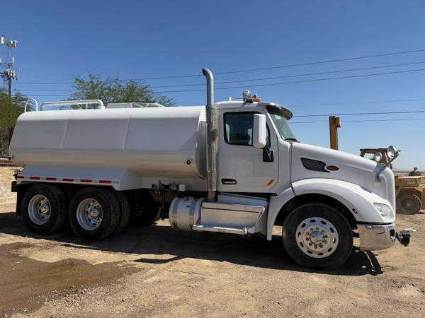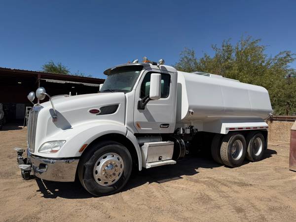 Peterbilt 2018 579 Cummins X15 engine jake brake 3 stage Jake brake 10 speed manual Eaton Fuller Transmission 4000 gallons new steel Baffled tank, 2 1/2-inch Fast flow valve, pump 800 GPM 75PSI 2 front sprayers 2 side cannons and 2 rear sprayers air controlled from the interior of the cab 6 switch box, draft system 3 inch to suck water from pond ready to work no codes on truck been cheeked with a computer and has a new oil service with new filters!