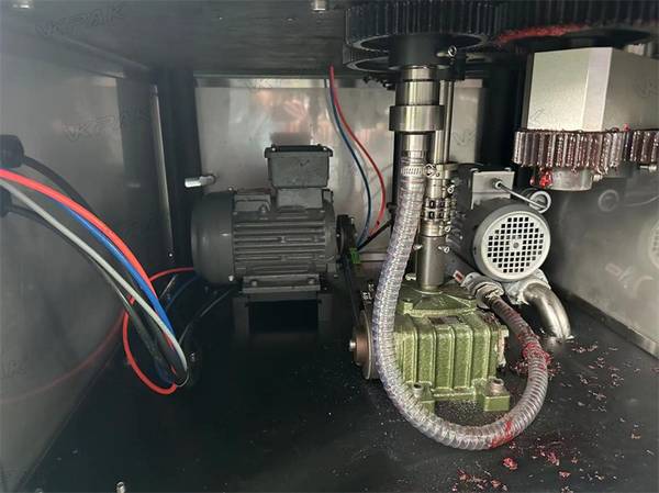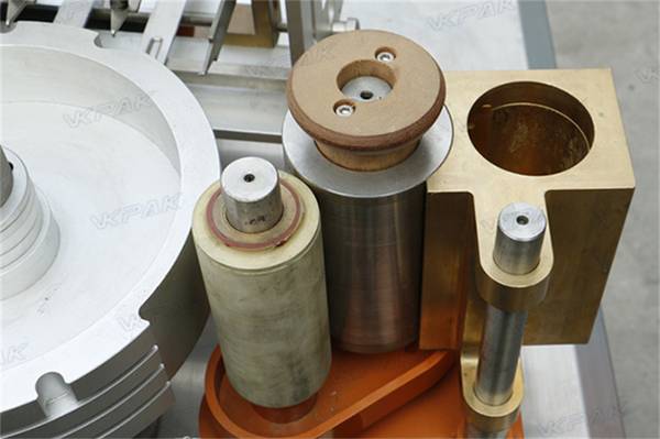 The right side of the copper container is used to storage glue. The “A” transitional roller will help to glue the “B” rubber roller, and the rubber roller can make the middle rotary plate be glued evenly, improves labeling quality.