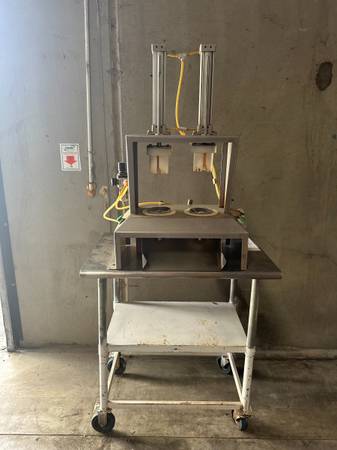 Pneumatic apple core machine. Can core and wedge to any size slices. Made in USA.