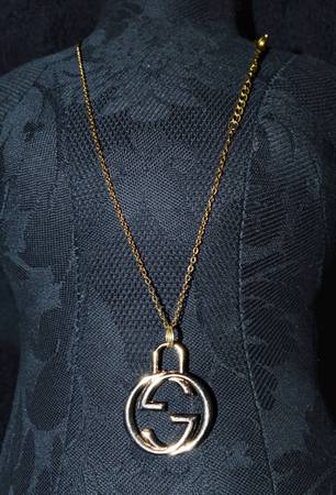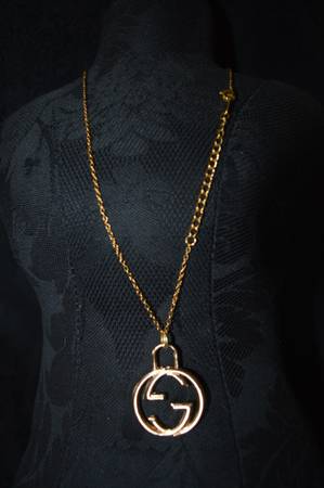 GUCCI GG AUTHENTIC VINTAGE PENDANT NECKLACE 16'' INCHES GOLD TONE
