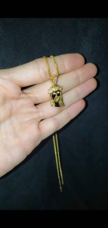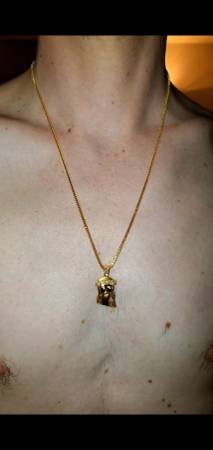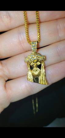 Up for sale is an authentic IF & Co. solid gold Jesus piece pendant paired with a 22-inch Franco chain. This is a high-quality, heavy, and eye-catching piece from one of the most respected custom jewelers in the game — IF & Co. (as seen on countless celebrities and artists).