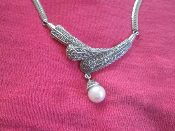 Gorgeous Sterling Silver/Marcasite Necklace - 18" with a pearl drop. This style necklace is over $120 on Esty!! Pictures do not do this piece justice, must see in person. CASH ONLY, PICK UP IN CARSON