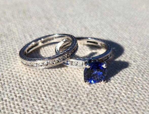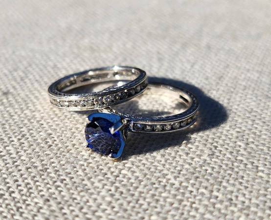 14K White Gold 2.70ctw. Sapphire + Natural Diamond Bridal Wedding Set | Solid 585