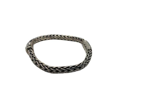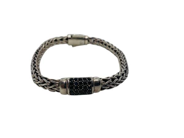 Description: This Phillip Gavriel Woven Bracelet showcases the brand's signature fusion of old-world craftsmanship and modern design. Expertly crafted from sterling silver, this 7.5", 32.6 Gram bracelet features an intricate woven pattern and is accented with a striking natural sapphire, adding a subtle pop of color and refined elegance.