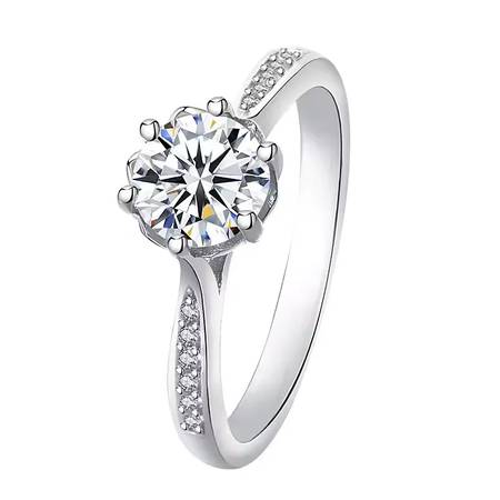 Metal- Sterling Silver 925 • Stone- Moissanite • Colour- D • Clarity- DVVS1 • Stone Size- Centre stone 8mm, Side Stones 1.2mm • Weight- 2.5 Grams • Plating- 14k White Gold • Certification- BIS...