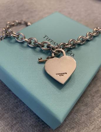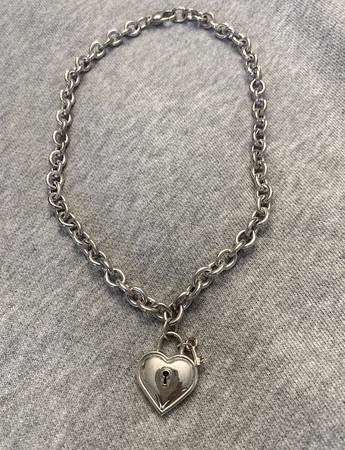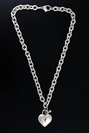 Authentic 1994 Tiffany & Co. hefty Retired Heart Padlock with Key and necklace in Solid 18k Yellow Gold & .925 Sterling Silver