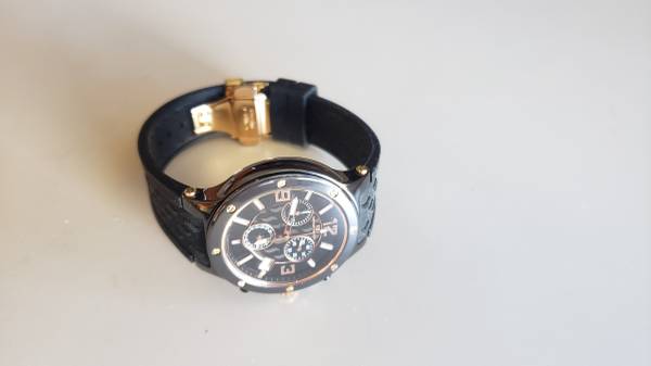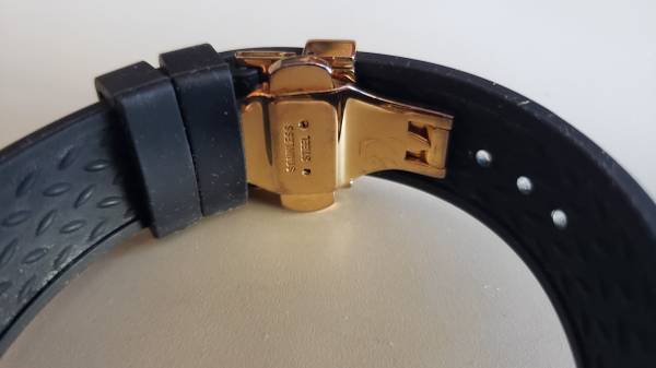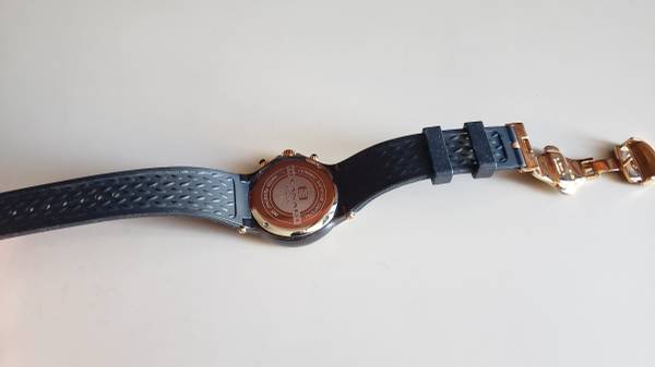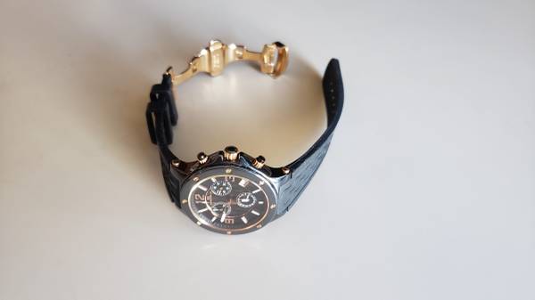 Like-new mens Oceanaut Elegante watch with black rubber wrist band and stainless steel golden clasp. Beautiful main time face with 3 inner faces including calendar and date. Ceramic sapphire...