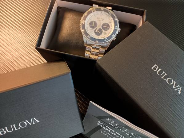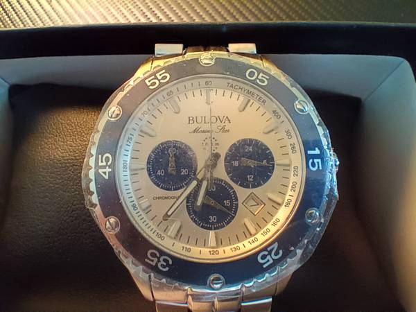 Bulova Men's Marine Star Quartz Chronograph Calendar Silver Watch...