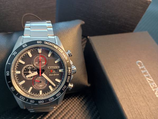 NEW Citizen Men's Sport Casual Chronograph Eco-Drive Silver Watch...