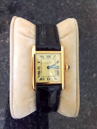 watch is in excellent condition with original Cartier brown strap and a new Cartier black strap the case size is 20mm x 27mm and is a quartz movement