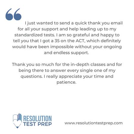 Please visit my website at resolutiontestprep.com for logistics/pricing information and to schedule a free consultation call.
