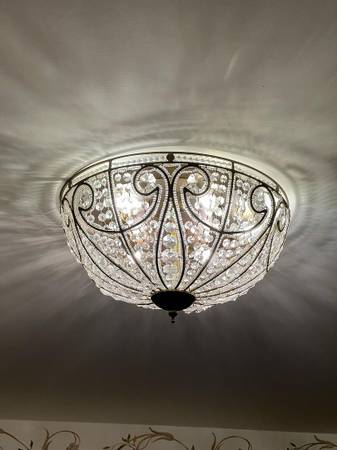 *Elizabethan Six Light Flush Mount (AS3) - Beautiful New Age Renaissance beaded flush mount ceiling with crystal dark bronze finis by Elk Lighting. Excellent condition. Retail $980. Dimensions: 17''W x 17''D x 10''H - 4 available, $350 each