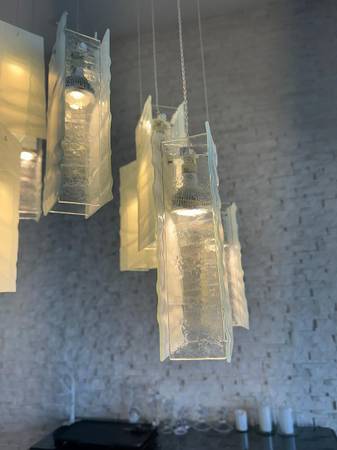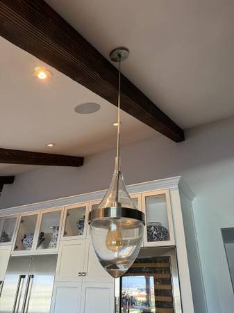 **Modern Blown Glass Pendant Light - Modern pendant with hand-blown glass shade by Tech Lighting. Gorgeous streamline look with tear shape design. (Retail $365 ea). Dimensions: 8w x 18h x overall 32h - 4 available, $65 each