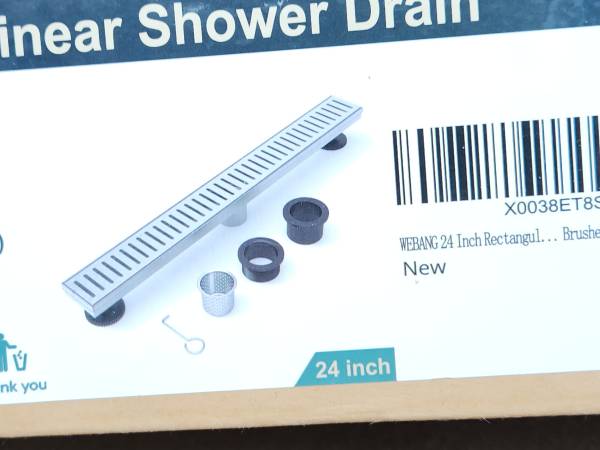 Linear shower drain new in box. LOWER PRICE NOW............ Bring $15.00 cash. Thanks for looking.