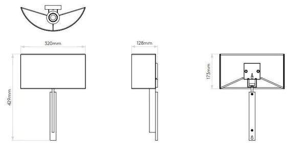 Height 435mm Width 325mm Depth 130mm (with shade)