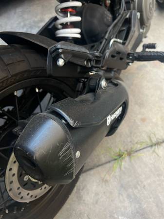 There are some cosmetic scrapes on the muffler and rear grab handle (see pics), — nothing that affects performance.