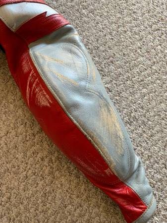 Used only a few times, clean. One low speed scuff as shown, no tears. Z Tech Gatorback CE4 back pad, built in elbow, hip, and shoulder pads. Knee sliders are fresh.