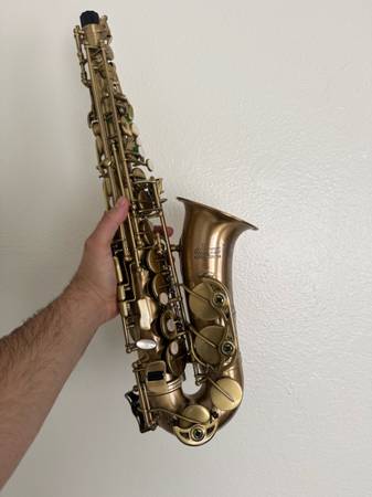 This sax is essentially BRAND NEW. Was played maybe a couple of times. The Allora brand has really come a very long way, making excellent horns at very efficient prices. Made in the same factory as Theo Wanne, Kessler Custom, Chateau & other very notable brands. This is this professional line, featuring a gorgeous brushed lacquer, a beautiful engraving & a solid build. Premium pisoni pads, great intonation & free-blowing in all registers. This is a GREAT pro-level sax at a student price. Absolutely spotless - no scratches, no dents, lacquer loss, dings or solder spots. 100% finish. Backpack style original case. Serial #1367XXX.