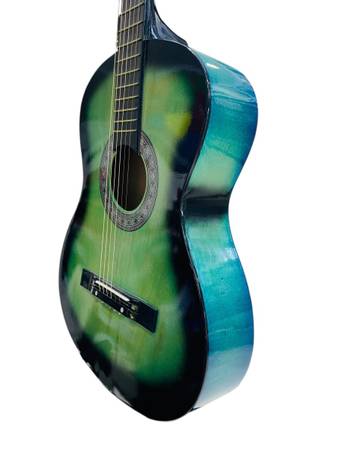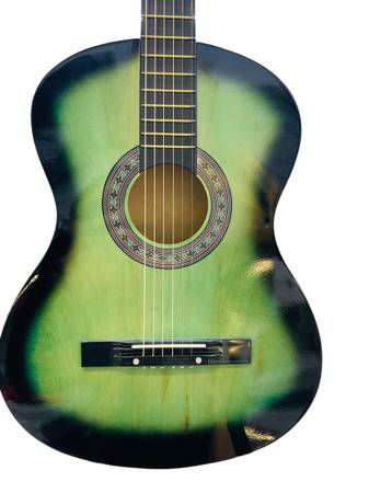 Description: For sale, we have a ZENY 38in Beginner Acoustic Guitar in a Blue/Black Sunburst finish. This pre-owned guitar shows normal signs of prior use such as light scratches, scuffs, or small cosmetic marks on the body and edges, but nothing that affects playability or sound. Overall, it remains in good working condition and is ideal for beginners or casual players.