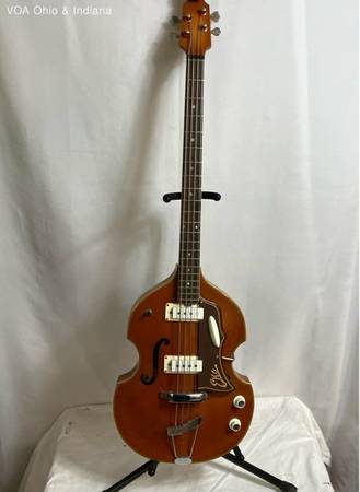 Up for sale is a vintage EKO 995 Brown Electric Bass Guitarmade in Italy in MINT condition, perfect for vintage tone seekers and collectors alike. This semi-hollow body bass features honey burst finish with dual F-holes for a retro aesthetic and enhanced resonance. Equipped with two single-coil pickups, independent volume and tone controls, and a short 30.5" scale length, it delivers warm, punchy tones ideal for jazz, rock, or blues. The maple neck and rosewood fingerboard offer smooth playability, while the original tuners and bridge ensure solid performance. A classic instrument with timeless appeal.