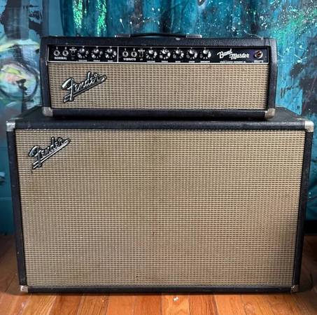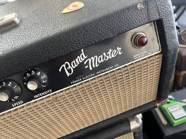 Incredible sounding 1965 Fender Bandmaster amp head and cabinet. Original mix of tubes, transformers, and Oxford T12 speakers; serviced with some capacitor replacement, 3 prong AC cord. In good condition. Includes 2 original 12" speakers and transformers (see pictures). Great sounding and vibrato works fine on Vibrato channel. No issues. Local pickup or ask for shipping costs to your area. Own and play through a vintage amp! Local pickup in Los Angeles. Seller has 100% rating on Ebay.