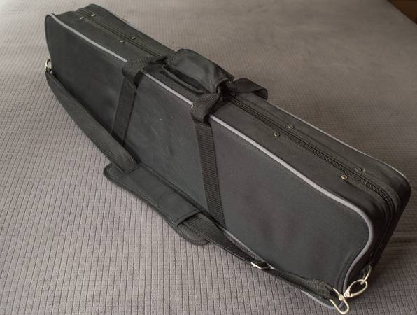 adjusted from the playing position. The Steinberger endpin tuners are 40:1 for stability and fine-tuning control. Price includes original case, a 2.5mm allen wrench, (you will also need a 2mm wrench), rosin, how to re-string and tune instructions, and a new set of D'Addario Helicore medium strings. THERE IS NO BOW INCLUDED. A Carbon Fiber Bow can be purchased for under $30.00. The NS Design bow is $215.00. If you need a cord to plug into an amp we will include a new one. Check it out; plug it in and play! See if it suits you.