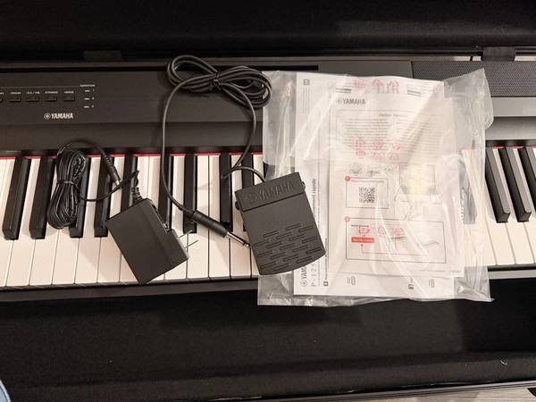Yamaha P-125A 88-Key Digital Piano. Pure CF Sound Engine with dynamic grand piano tones. Yamaha AC power adapter. Yamaha sustain pedal.
