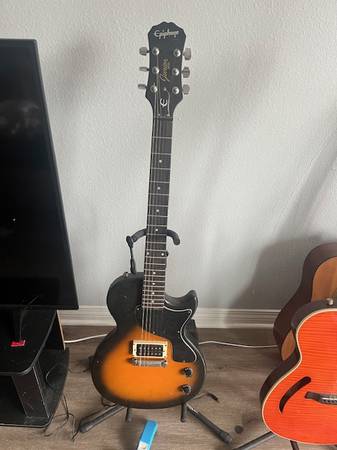 Epi Les Paul. Set up for slide. Slight crack in neck.