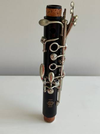 This is a professional model, Bb clarinet made by the Henri Selmer Company of Paris, France. It is the famous N-series or Balanced Tone (BT) model, crafted during the Golden Era of jazz clarinets and considered by many to be the ultimate jazz horn. Matching serial number on upper and lower body of N3240.