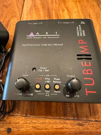 Selling an ART Tube MP preamp in great working condition, perfect for home studio use. This unit delivers classic tube warmth to your microphone or instrument signal, has phantom power, phase reverse, gain/output knobs, and comes with the original ART power adapter. It’s an affordable and reliable way to improve your recordings with real tube character.