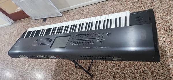 Korg Kronos X 88 keyboard workstation. 7 keys make a click noise when pressed. 4 keys get stuck when pressed. Missing fader caps as pictured. Does not power on. Sold as is.