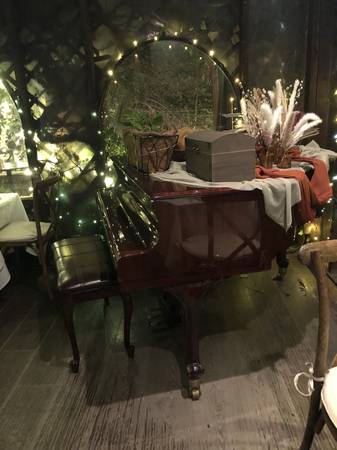 Mahogany Baby Grand and bench included plays beautifully, its at The Inn of the Seventh ray and they were playing it every night when the people came together to get through the fire storm and I have video of it being played which they also shared online