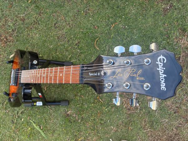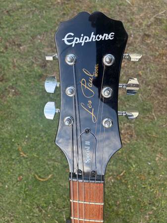 Epiphone Les Paul Special II guitar in fine shape. Some scratches here and there but nothing serious. Has two screaming Humbuckers and is ready to ROCK! No case.