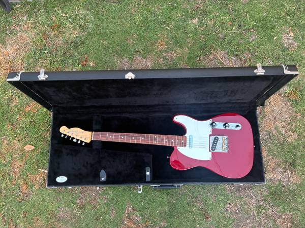 Fender Telecaster with 60s series neck MIM from 2017. Great sound and pau ferro fingerboard feels terrific. Guitar is in mint condition but for some reason the original knobs have been switched out and serial number on neck plate is more or less a decoration. Comes with Fender hard case.