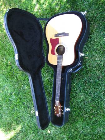 NEW - Traditional full-sized acoustic guitar modeled after the Taylor 400 series instruments. Built with premium materials and high quality craftsmanship. Choice spruce top with mahogany back and sides. Beautiful detailing and precision gold tuners. This was the manufacturer's display model. Sounds and plays great! Perfect!! Comes with a genuine Taylor hardshell case. Priced well below market. Cash and local pickup only. Please contact John. CALLS Preferred. Thank you.