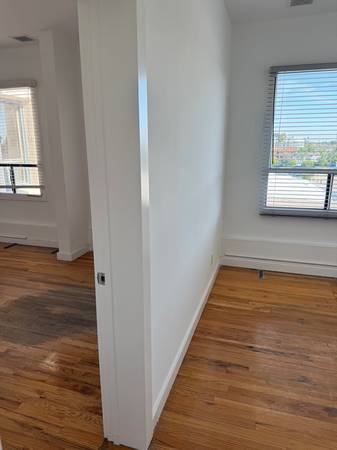 1,214 sf spacious and bright unit overlooking Wilshire Blvd and Dunsmuir for rent. This unit has 5 separate rooms and a private bathroom. All walls in the unit are now painted white.