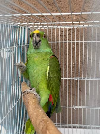 Rehoming to a good home fees apply Female yellow naped Amazon about 1.5 years old semi tamed for more information text me